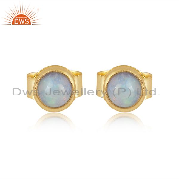Handcrafted Dainty Gold On Silver Round Ethiopian Opal Studs
