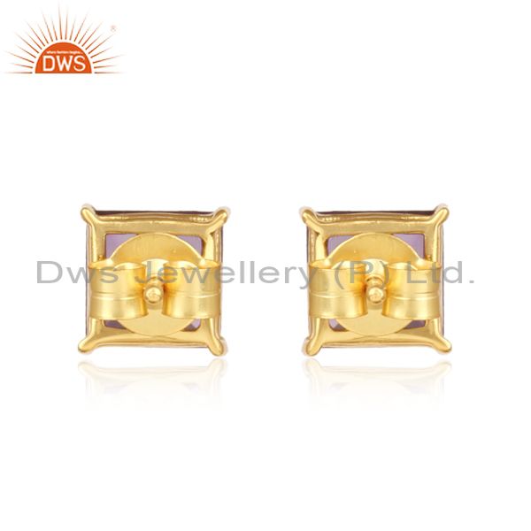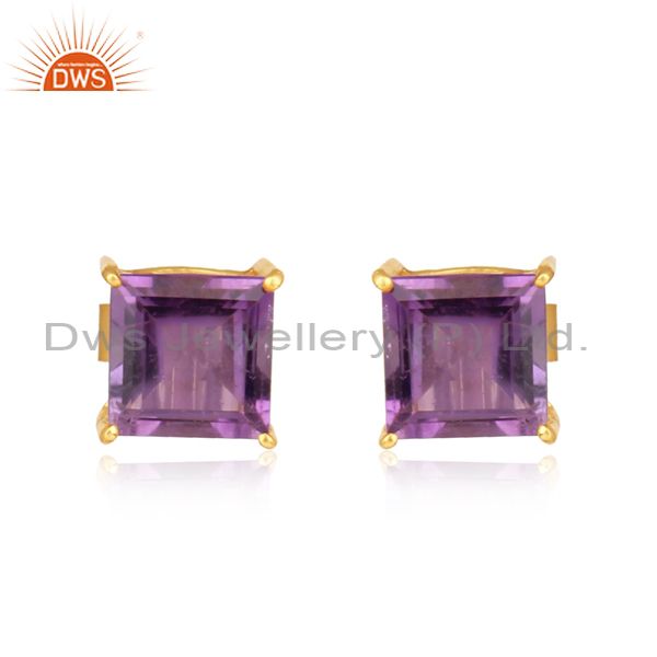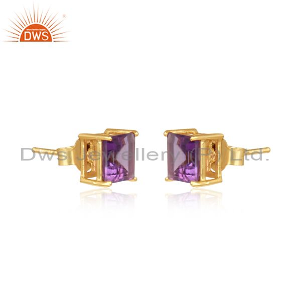 Handcrafted Dainty Yellow Gold on Silver 925 Amethyst Studs