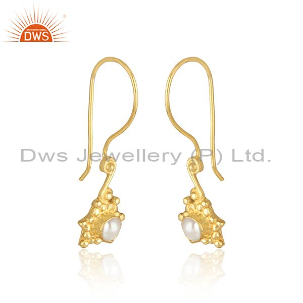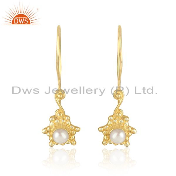 Handcrafted Dangle Earring in Yellow Gold on Silver with Pearl