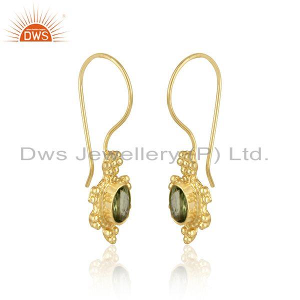 Handcrafted Dangle Earring In Yellow Gold On Silver With Peridot