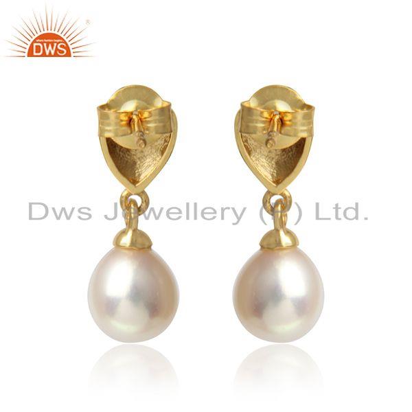 Handcrafted Designer Gold On Silver 925 Dangle With Pearl And Cz