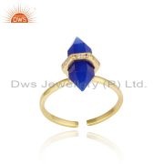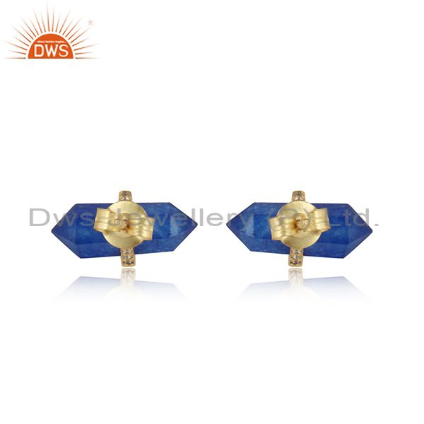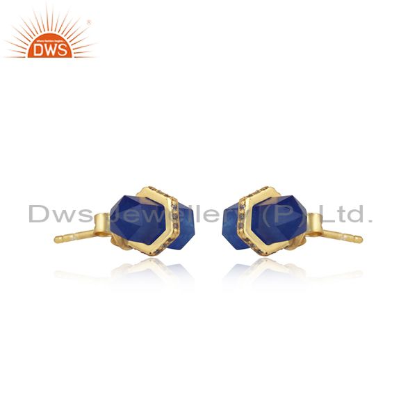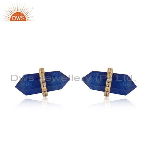 Handcrafted Designer Lapis Pencil Gold On Silver 925 Cz Studs