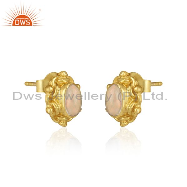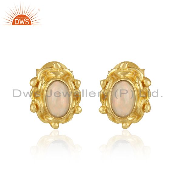 Handcrafted Earring In Yellow Gold On Silver With Ethiopian Opal