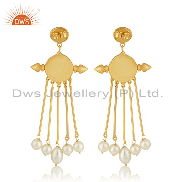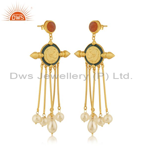 Handcrafted Face Design Gold PLated 925 Silver Pearl Earrings Wholesale