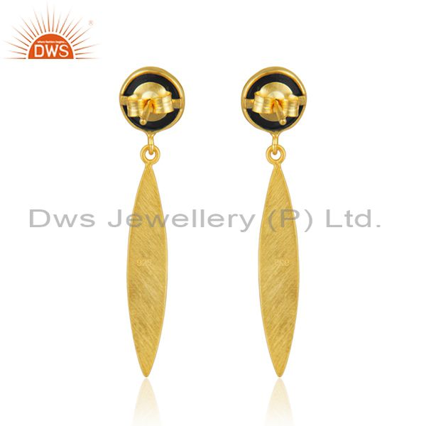 Handcrafted Gold Plated Sterling Silver Black Onyx Gemstone Earrings