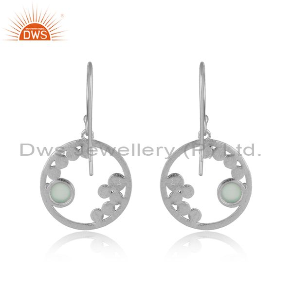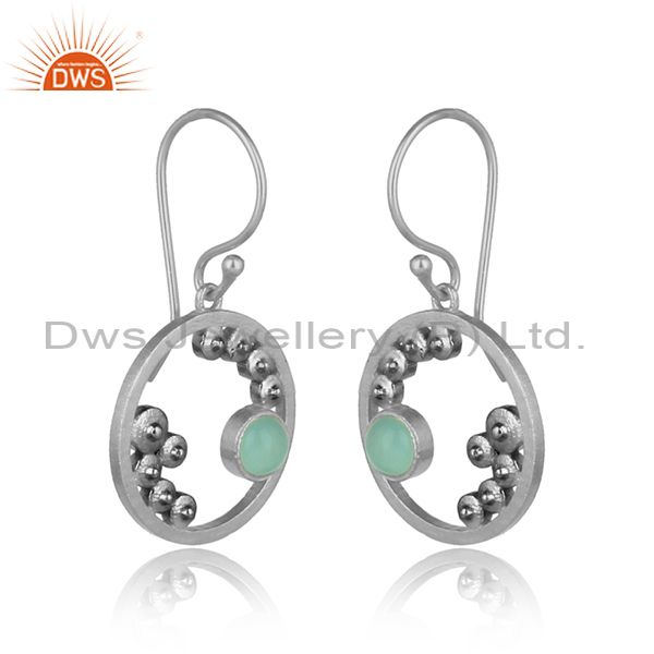 Handcrafted Granule Aqua Chalcedony Dangle in Oxidized Silver 925