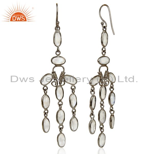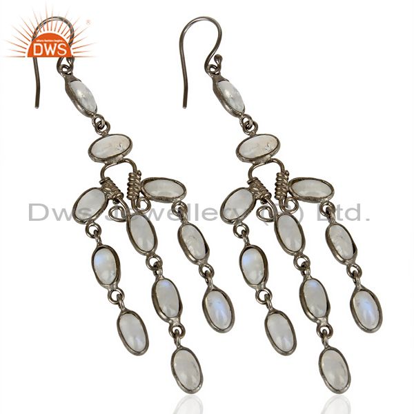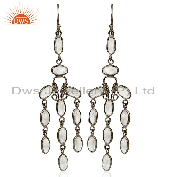 Handcrafted Oxidized Brass Rainbow Moonstone Chandelier Earrings