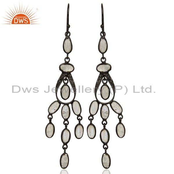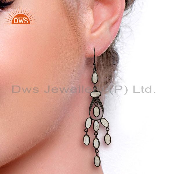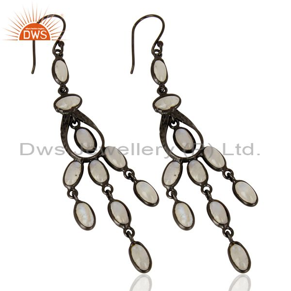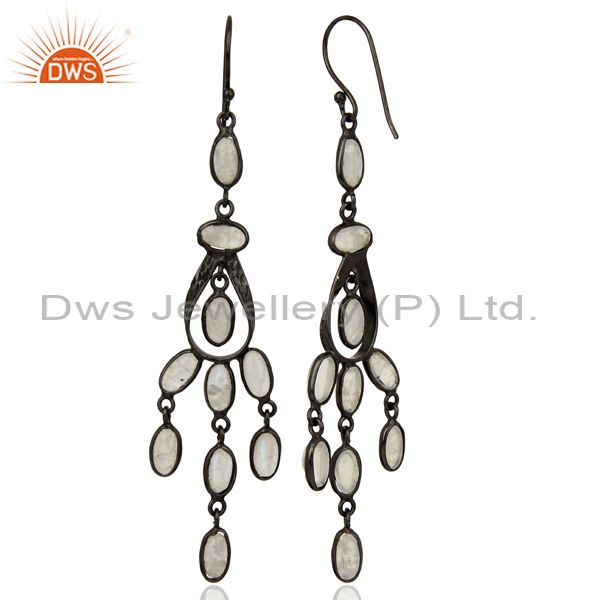 Handcrafted Oxidized Brass Rainbow Moonstone Womens Long Dangle Earrings