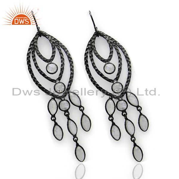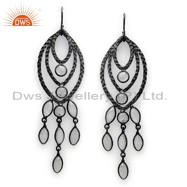 Handcrafted Rainbow Moonstone Chandelier Earrings Made In Oxidized Brass