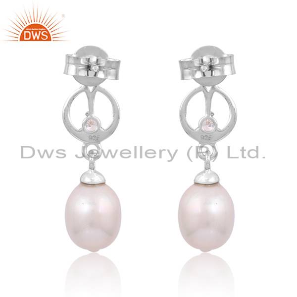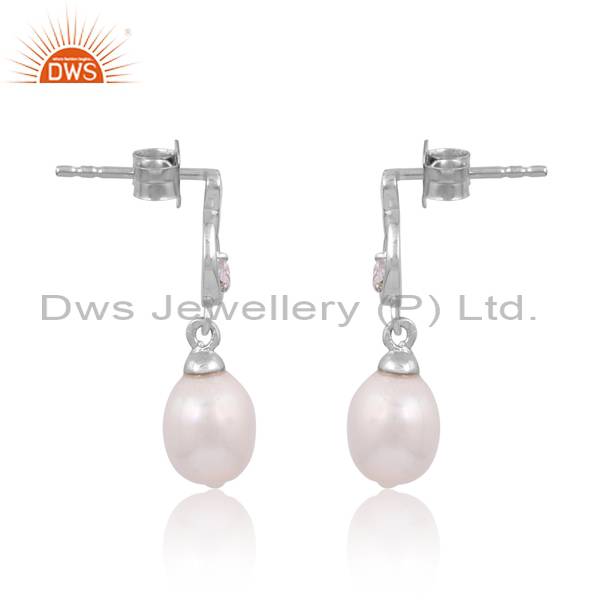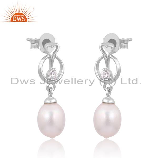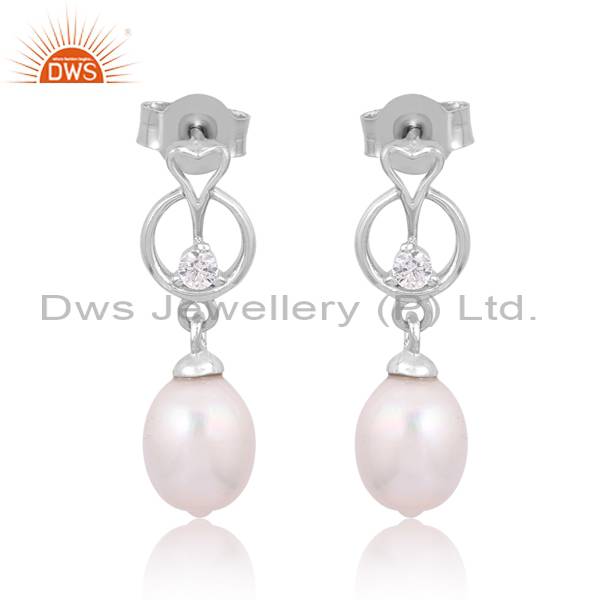 Handcrafted Silver Earrings With Pearl & Cubic Zirconia