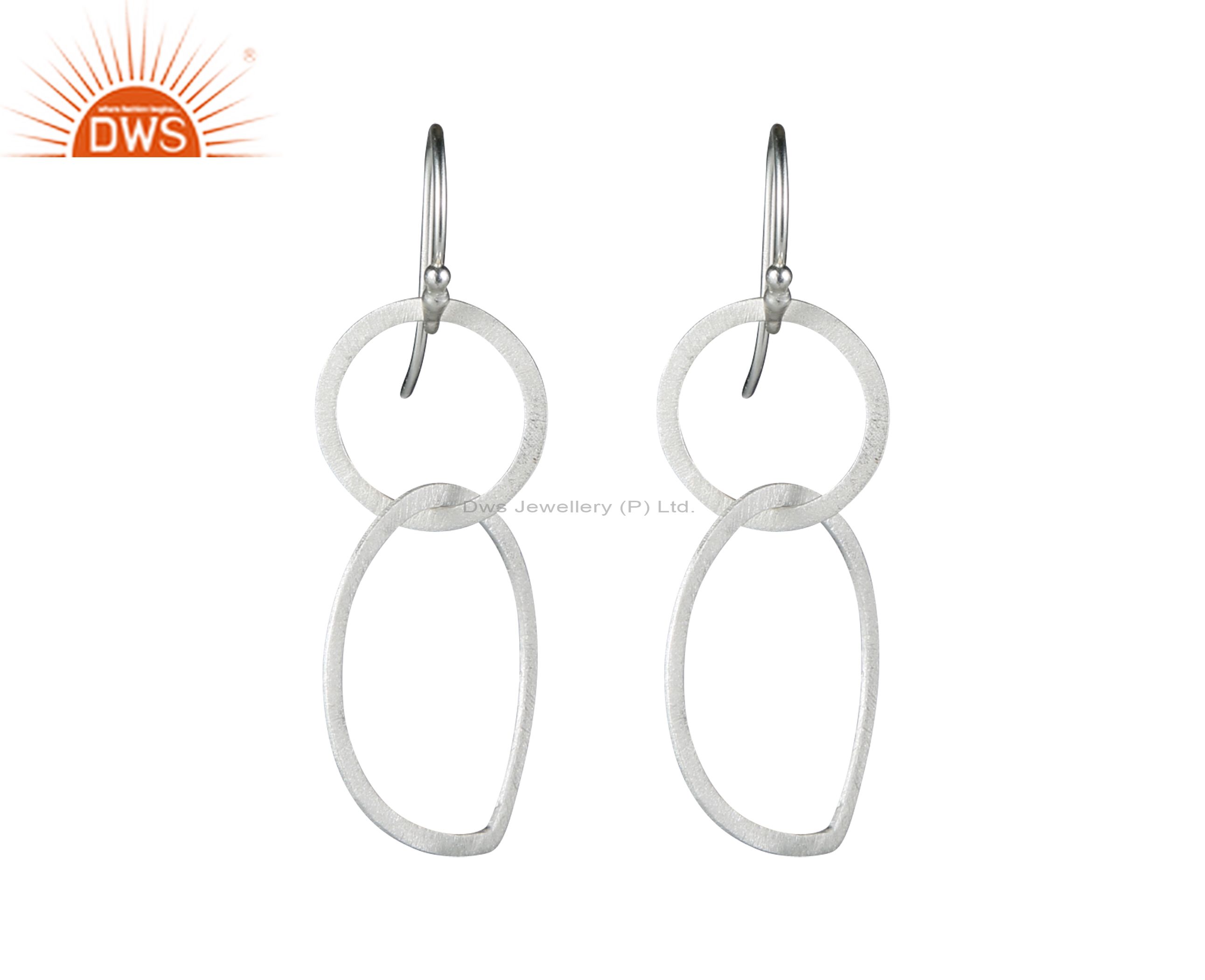 Handcrafted Solid Sterling Silver Brushed Finish Open Circle Dangle Earrings