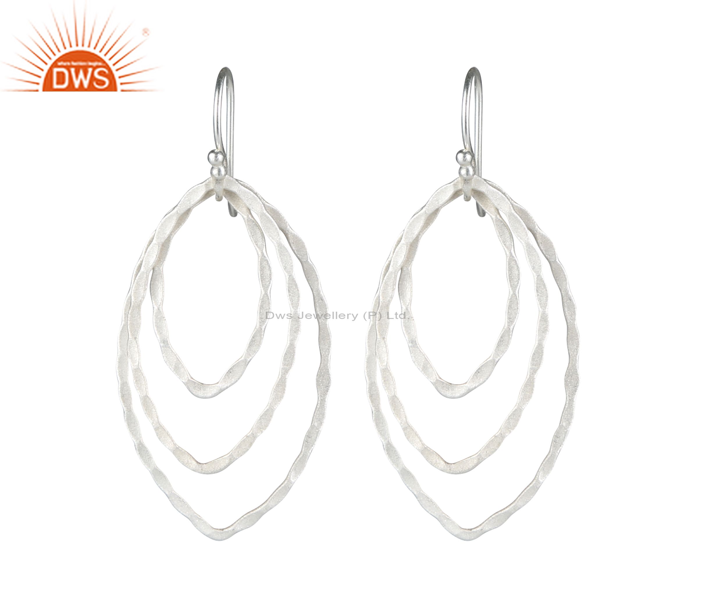 Handcrafted Solid Sterling Silver Hammered Open Marquise Dangle Earrings