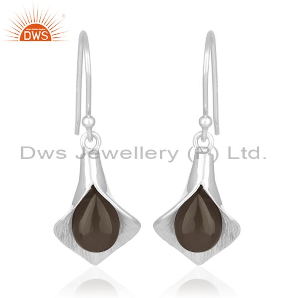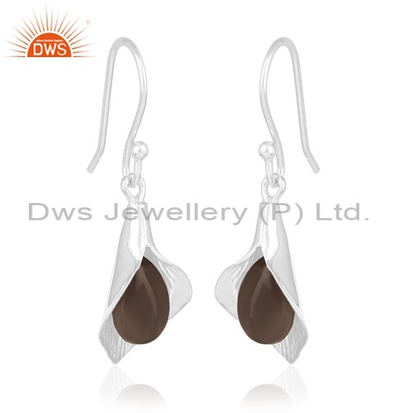 Handcrafted Sterling Silver Floral Design Smoky Gemstone Girls Earring Wholesale