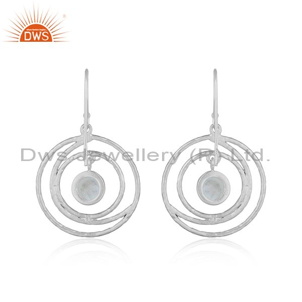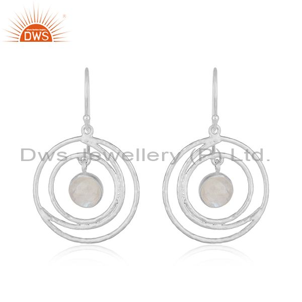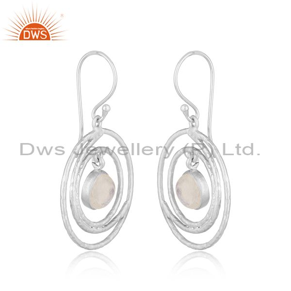 Handcrafted Textured Spiral Silver Dangle With Rainbow Moonstone