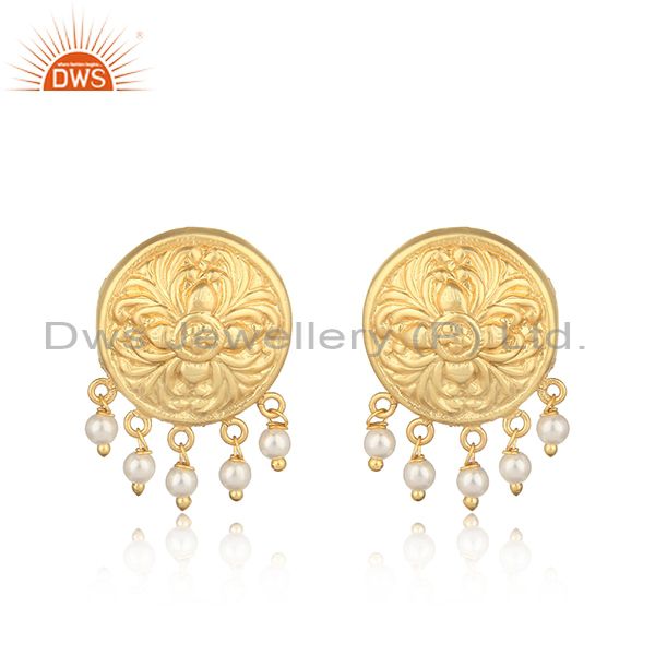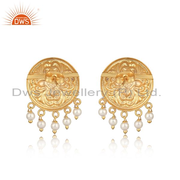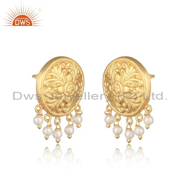 Handcrafted Textured Yellow Gold on Fashion Earring with Pearl