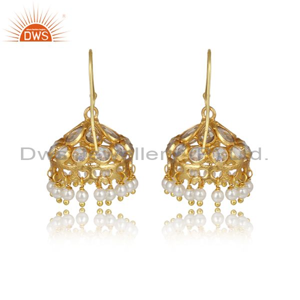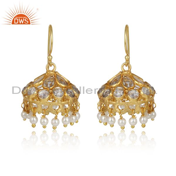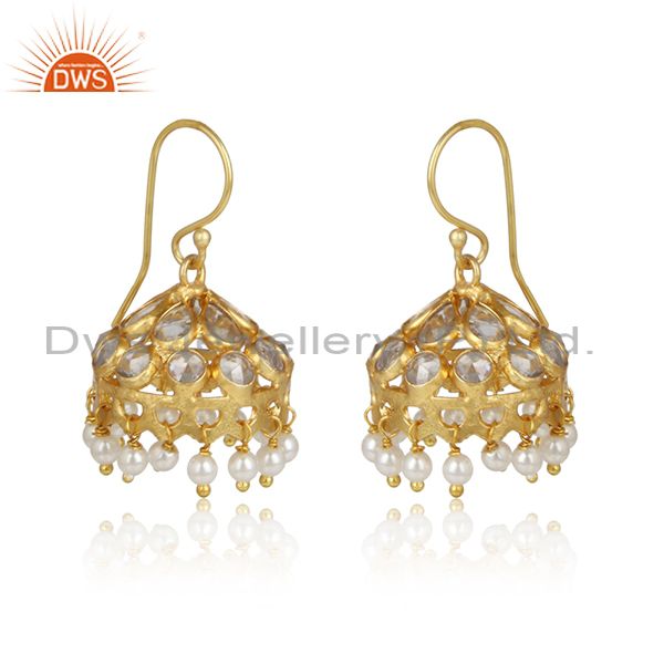 Handcrafted Traditional Design Gold On Silver Jhumka With Pearls