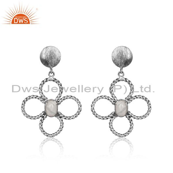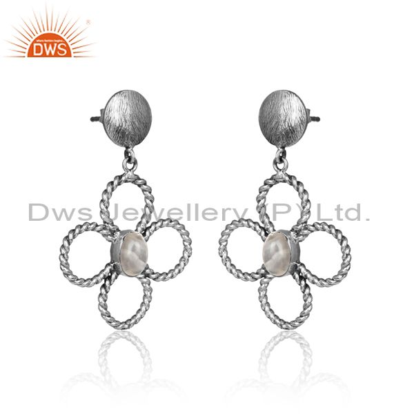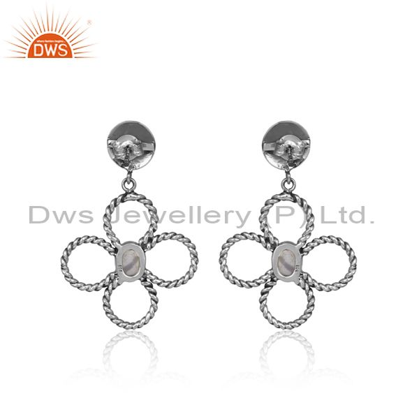 Handcrafted Twisted Oxidized Silver Rainbow Moonstone Earring
