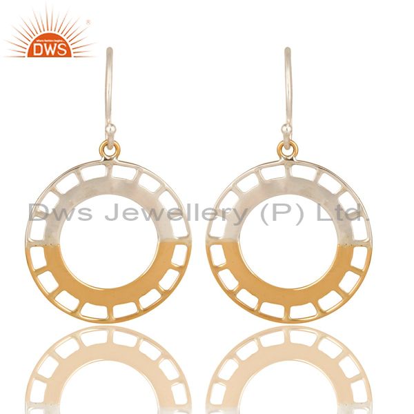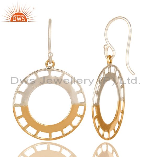 Handmade 18k Solid Yellow Gold And Half Sterling Silver Circle Designer Earrings