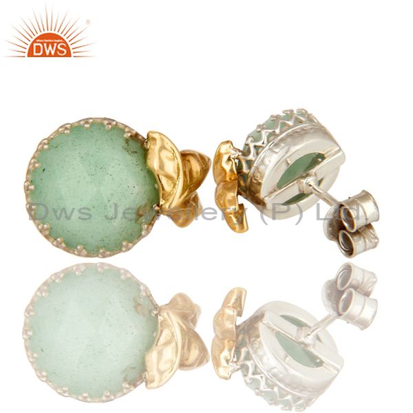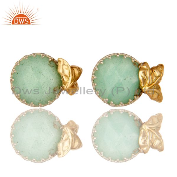 Handmade 18k Solid Yellow Gold Chrysoprase Faceted Gemstone Stud Earrings
