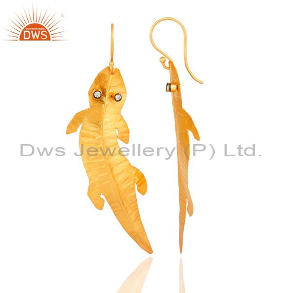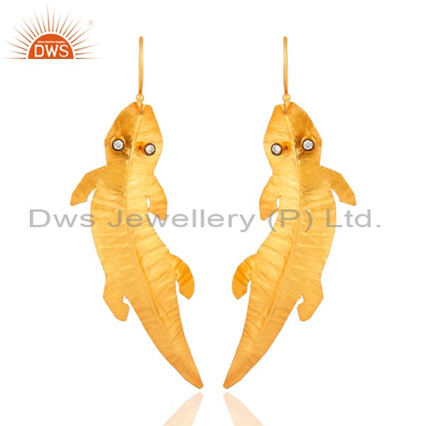 Handmade 18K Yellow Gold Plated Cz Gecko Lizard Design Dangle Earrings