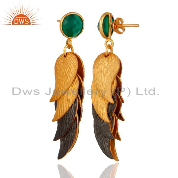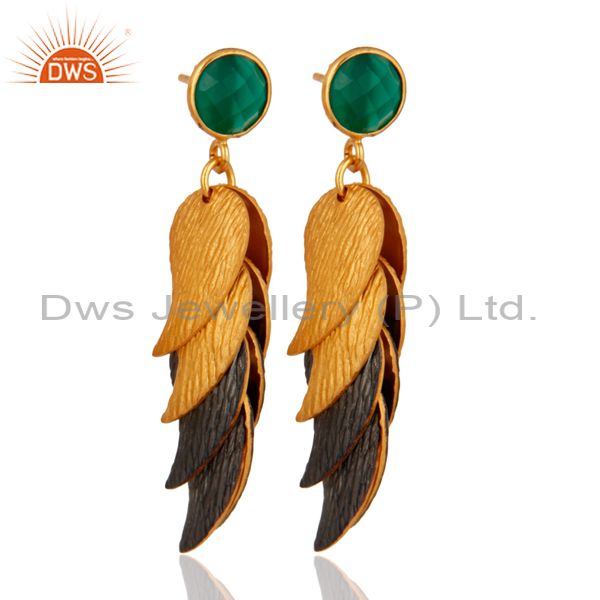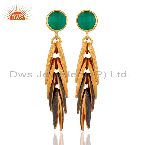 Handmade 18K Yellow Gold Plated Green Onyx Gemstone Designer Earring