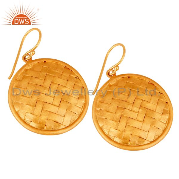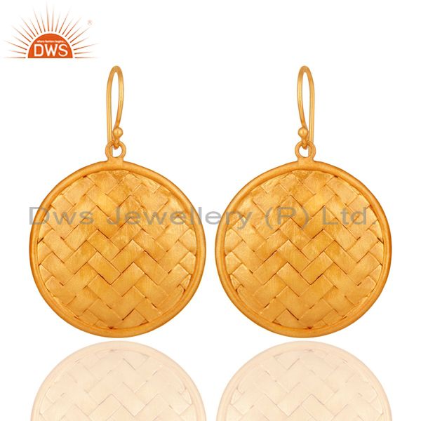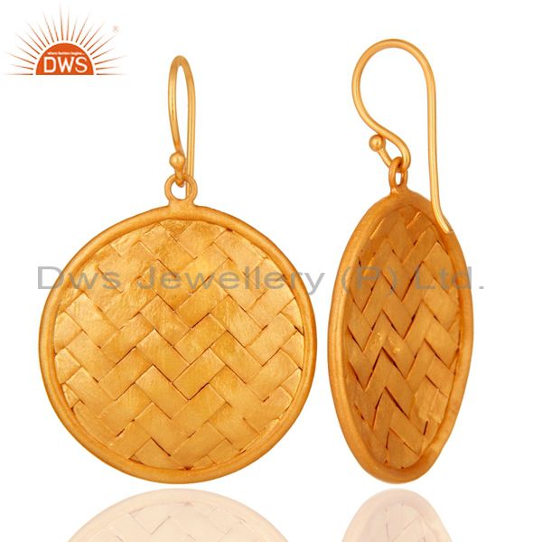Handmade 22K Yellow Gold Plated On Sterling Silver Wire Weave Designer Earrings