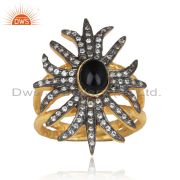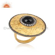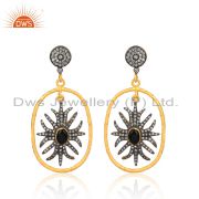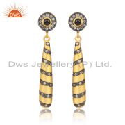 Handmade 24K Gold Plated 925 Sterling Silver Black Onyx Earring With Zircon