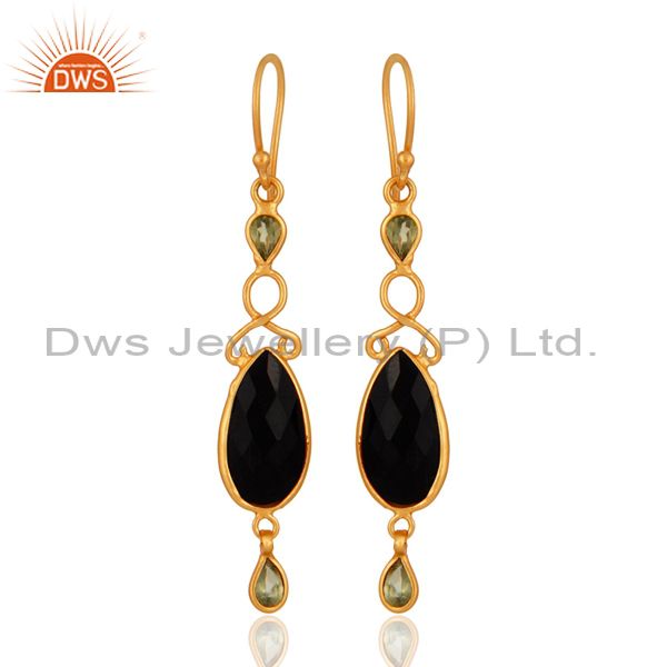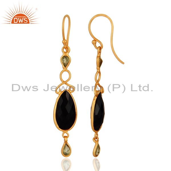 Handmade 24K Gold Plated Sterling Silver Peridot & Black Onyx Designer Earring