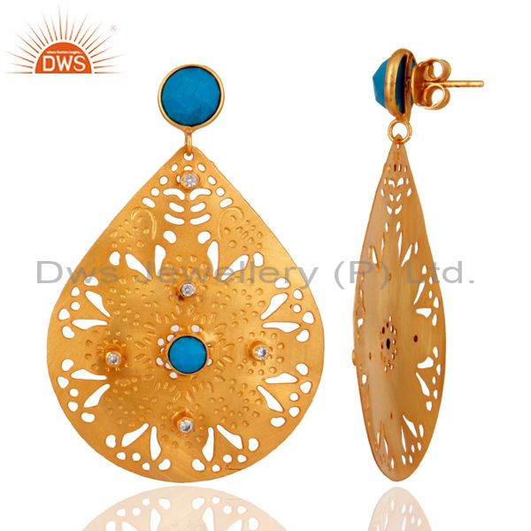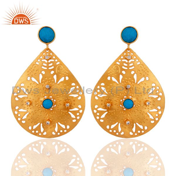 Handmade 24Karat Yellow Gold Plated Filigree Designer Dangle Turquoise Earrings