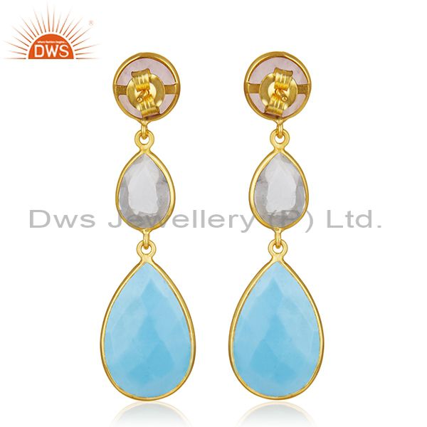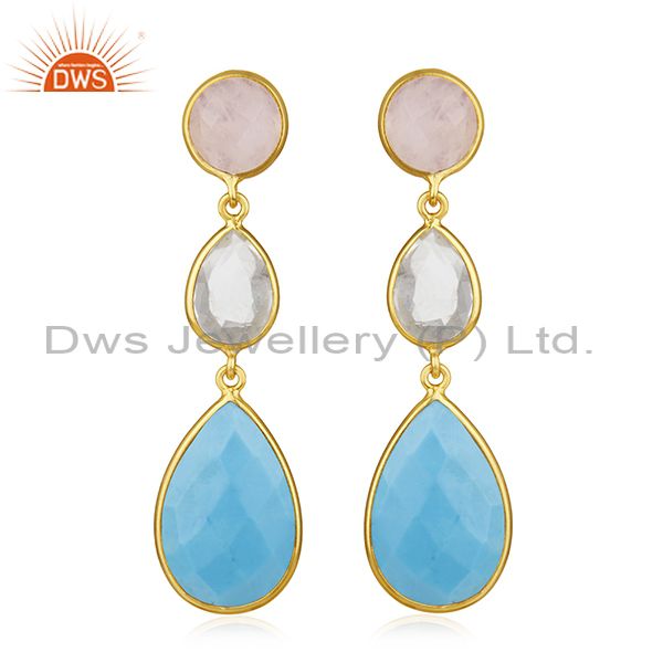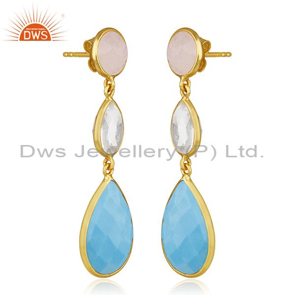 Handmade 925 Silver Gold Plated Multi Gemstone Dangle Earring Jewelry Wholesale