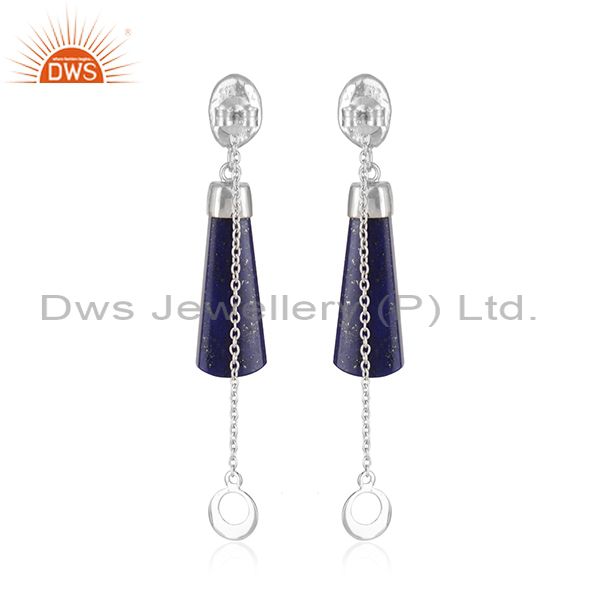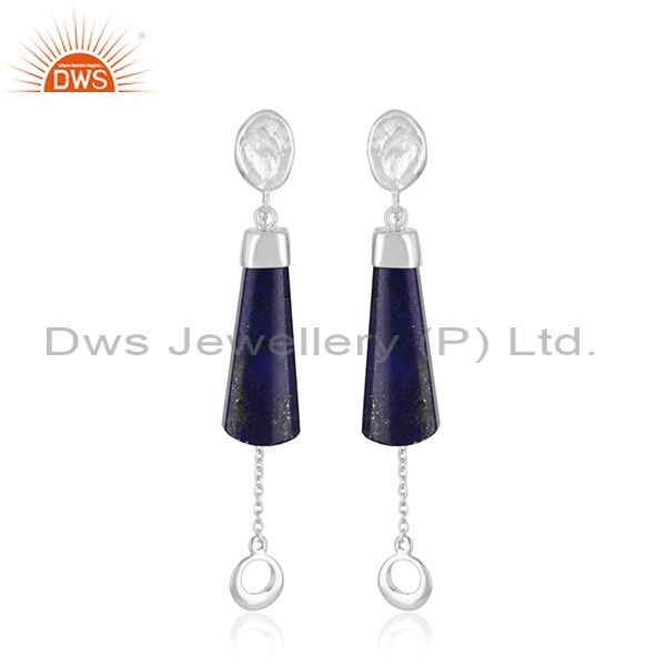 Handmade 925 Sterling Designer Silver Lapis lazuli Gemstone Earrings