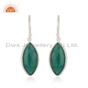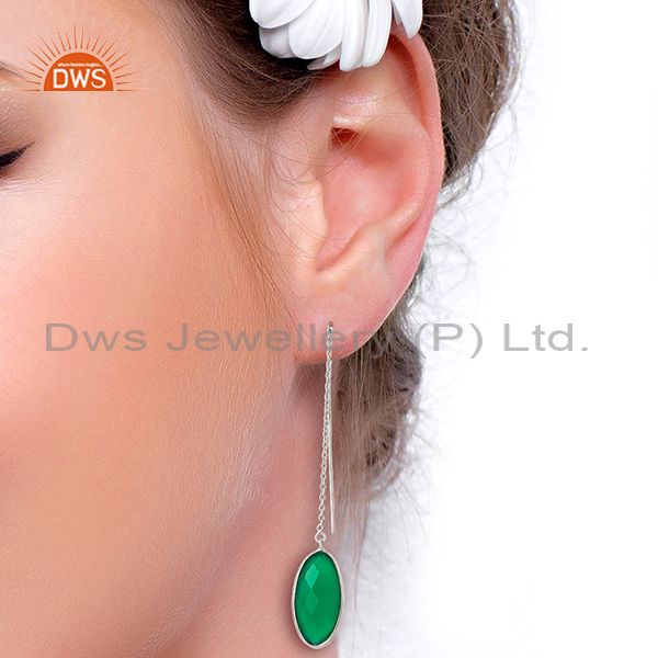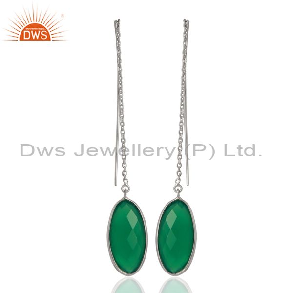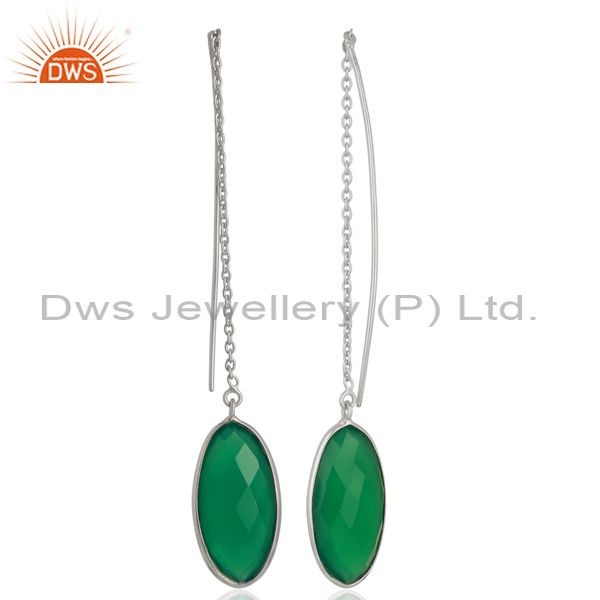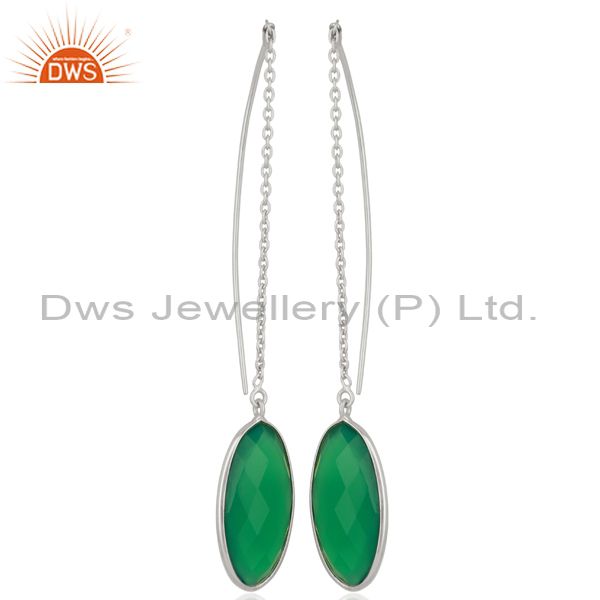 Handmade 925 Sterling Fine Silver Green Onyx Gemstone Chain Earrings