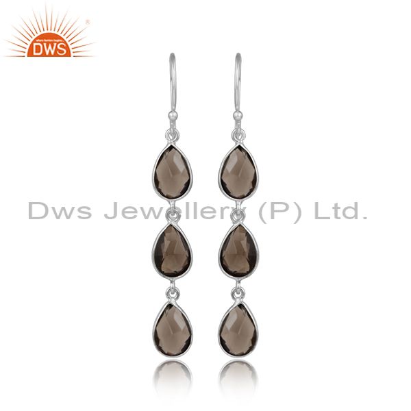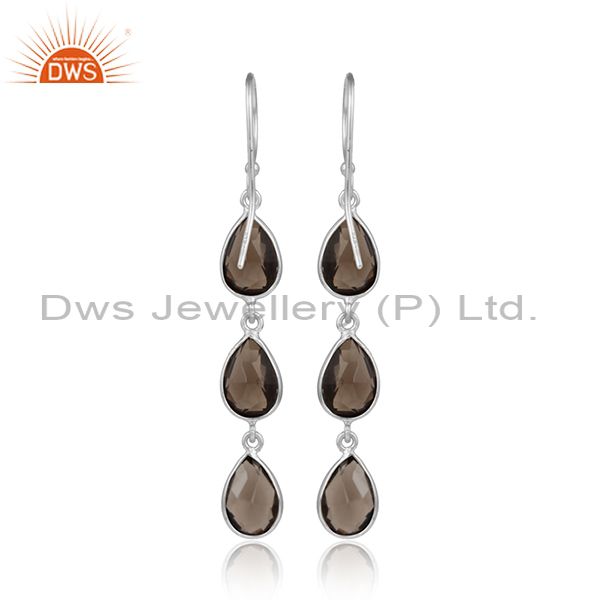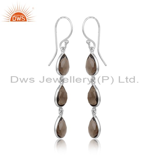 Handmade 925 Sterling Fine Silver Smoky Quartz Gemstone Earrings