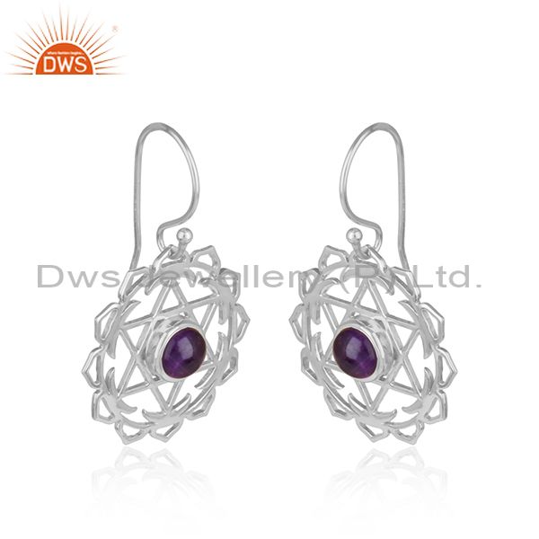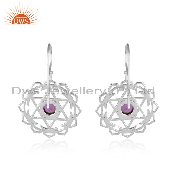 Handmade 925 Sterling Silver Chakra Design Amethyst Earrings