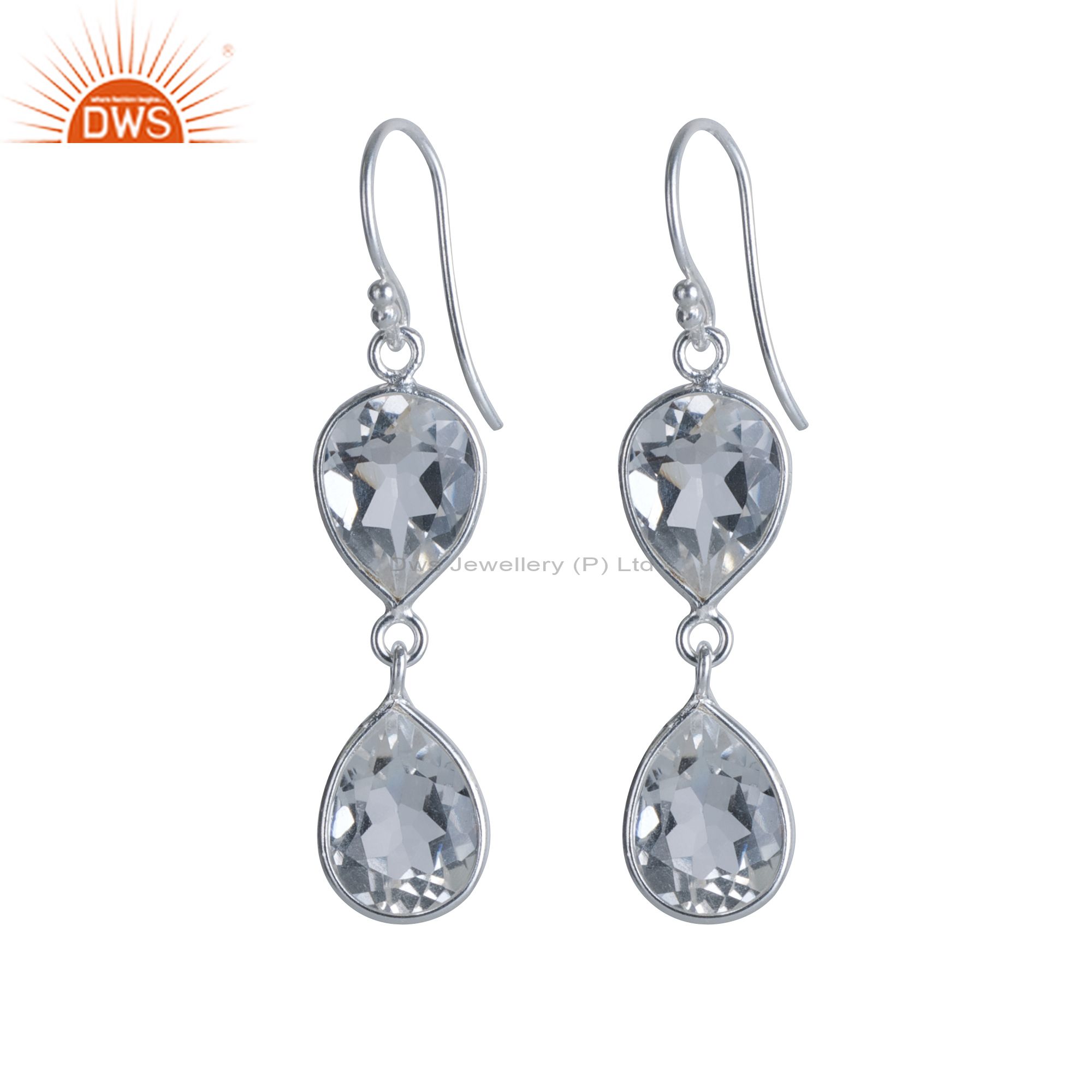 Handmade 925 Sterling Silver Crystal Quartz Gemstone Dangle Earrings