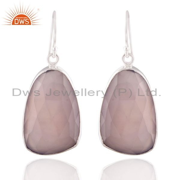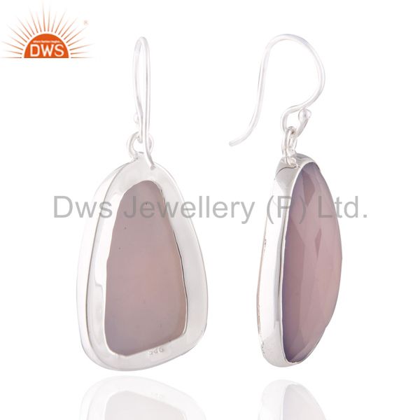 Handmade 925 Sterling Silver Natural Gemstone Rose Chalcedony Bezel Set Earring