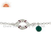 Handmade 925 Sterling Silver Ruby & Green Onyx Gemstone Dangle Earrings