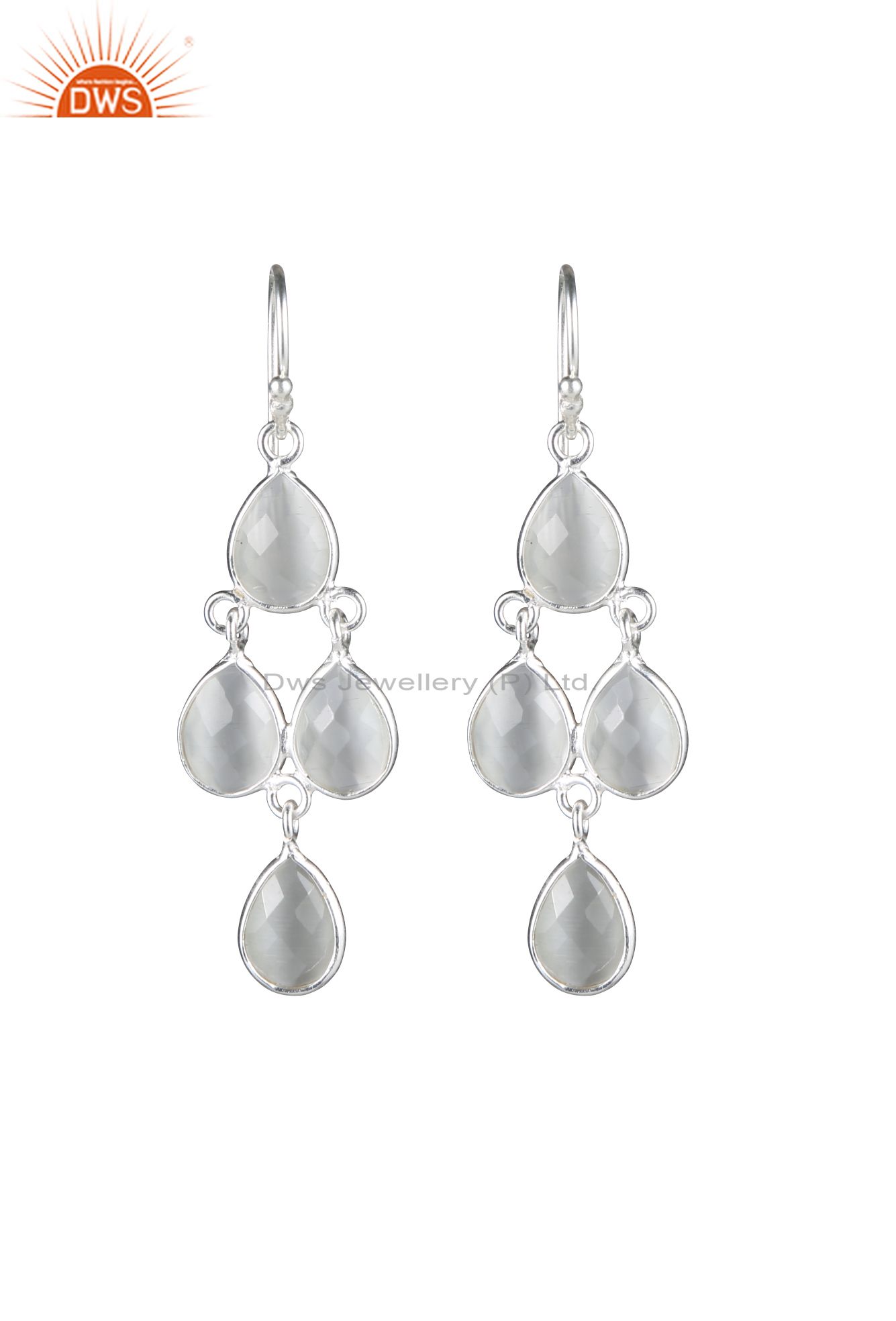 Handmade 925 Sterling Silver White Chalcedony Drop Chandelier Earrings