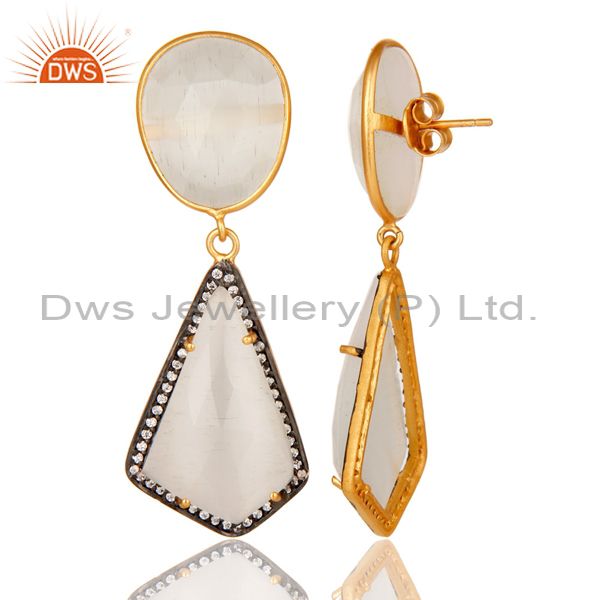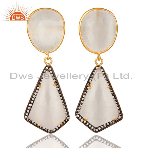 Handmade 925 Sterling Silver White Moonstone & White Zircon Designer Earrings