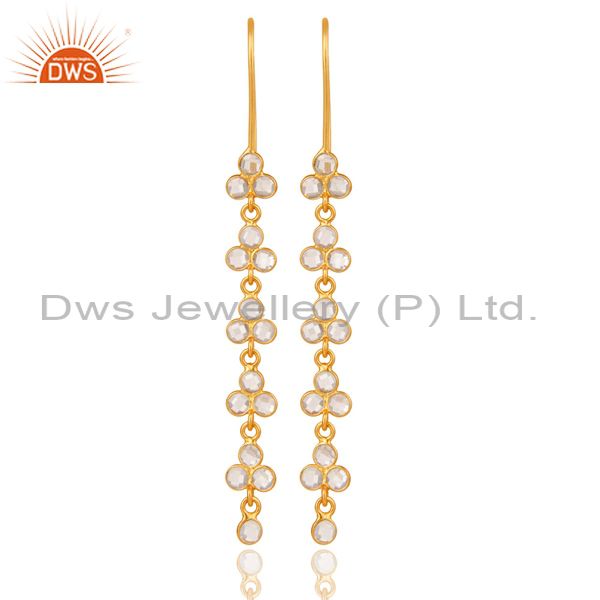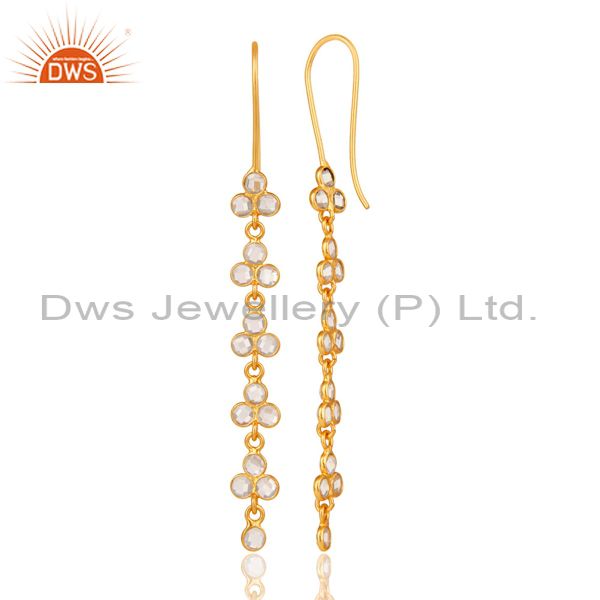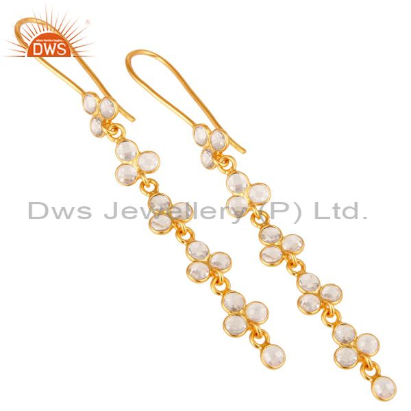 Handmade 925 Sterling Silver White Zircon Gemstone Gold Plated Dangle Earrings