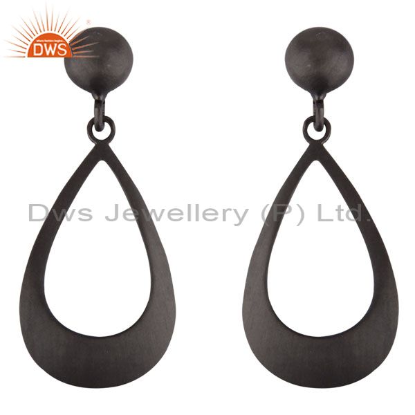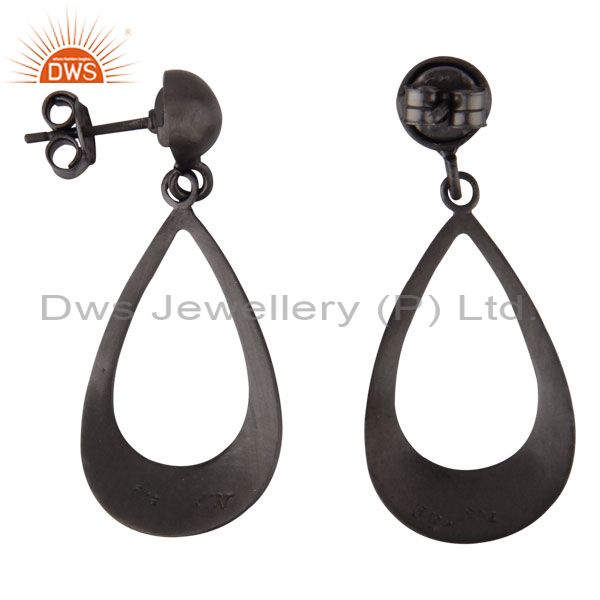 Handmade 925 Sterling Silver With Oxidized Cutout Teardrop Earrings