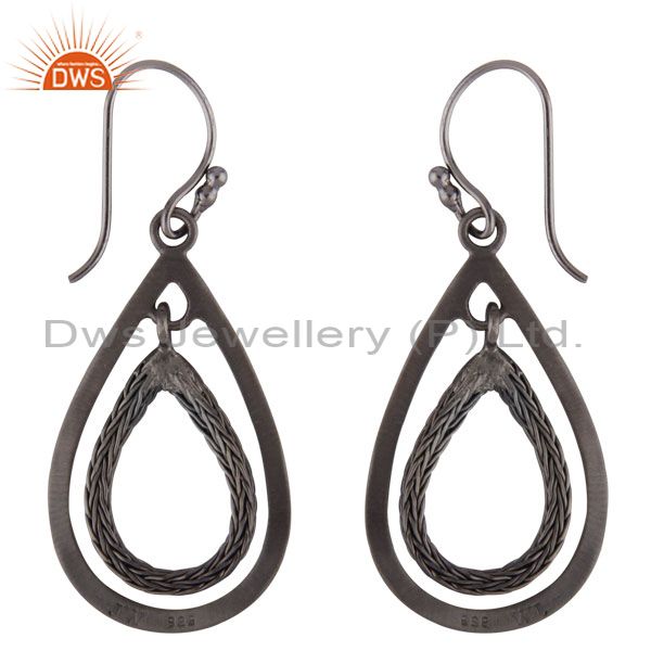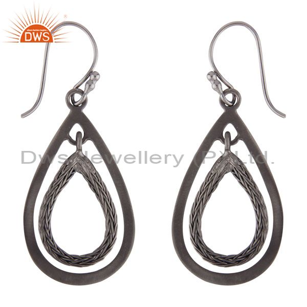 Handmade 925 Sterling Silver With Oxidized Open Teardrop Dangle Earrings