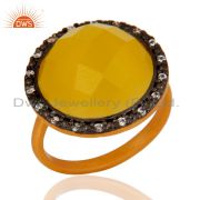 Handmade 925 Sterling Silver Yellow Moonstone & White Zircon Designer Earring