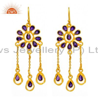 Handmade Amethyst Designer Chandelier Earrings Made In 18K Gold Over Silver