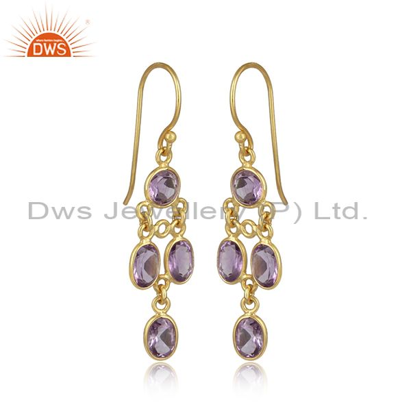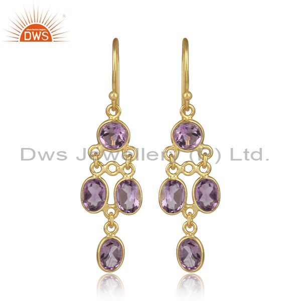 Handmade Amethyst Gemstone Earrings In 18K Gold On 925 Sterling Silver Jewelry