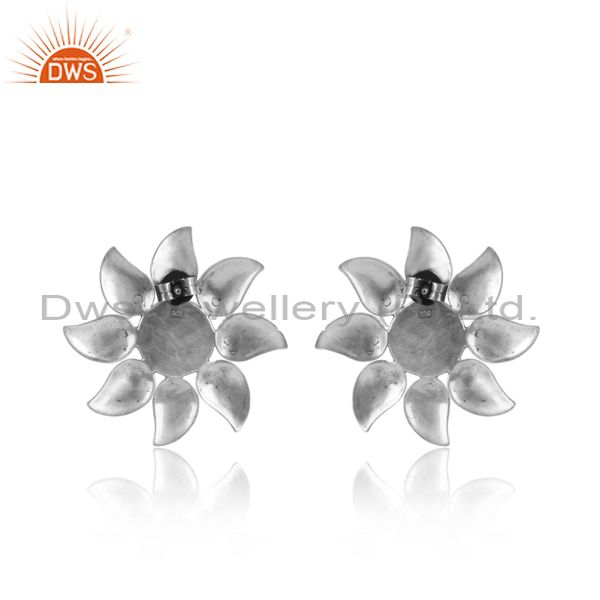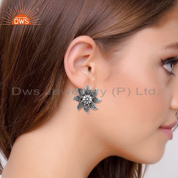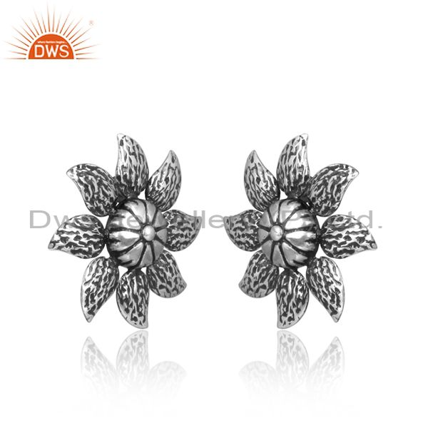 Handmade And Hand Hammered Floral Oxidized Silver Earrings