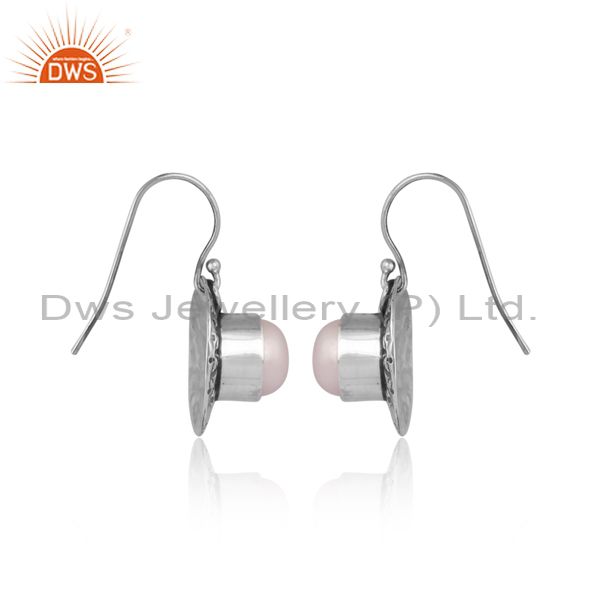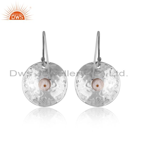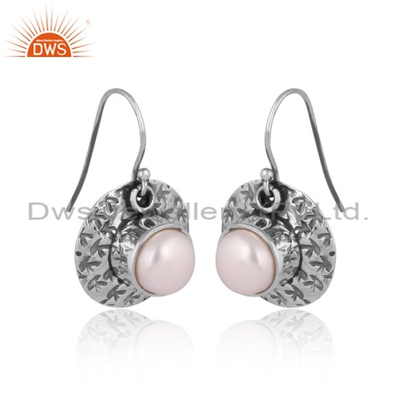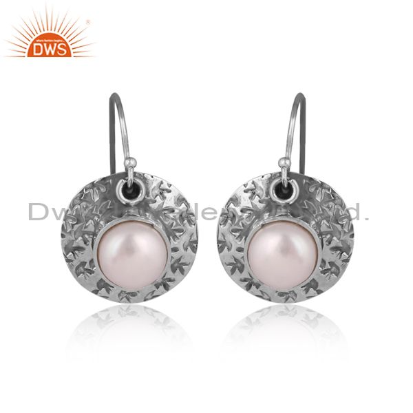 Handmade And Handhammered Pearl Set Oxidized Silver Earrings
