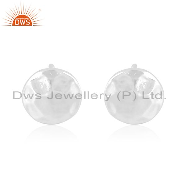 Handmade and handhammered round fine 925 silver earrings