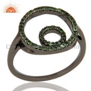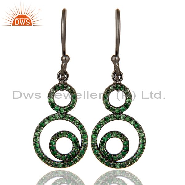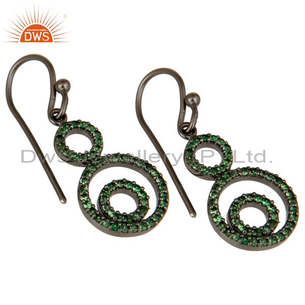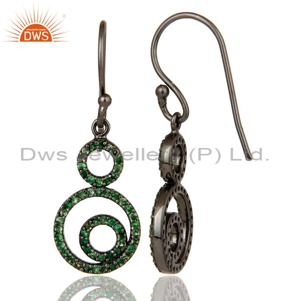 Handmade Black Oxidized Sterling Silver Dangle Design Earrings with Tsavourite