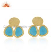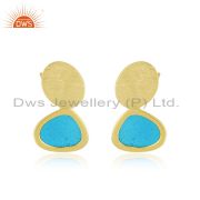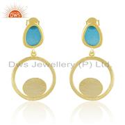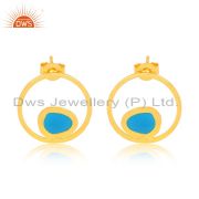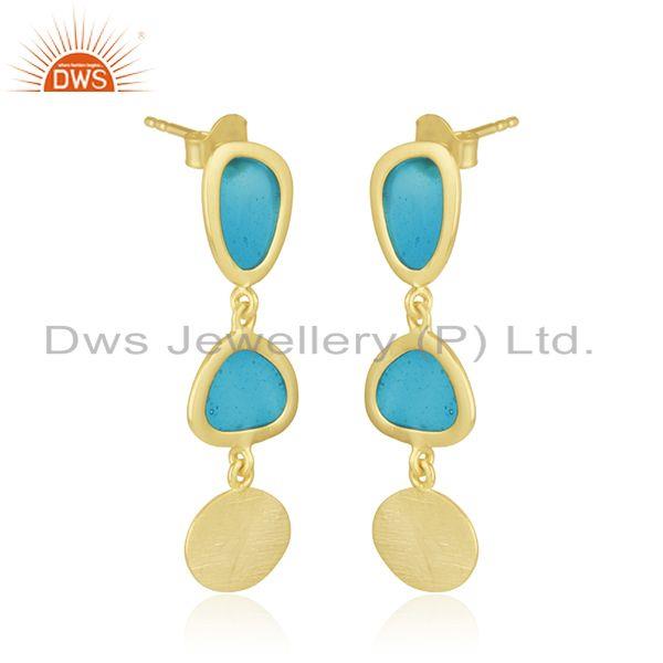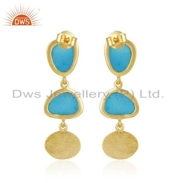 Handmade Blue Enamel Gold Plated 925 Sterling Silver Earrings Supplier